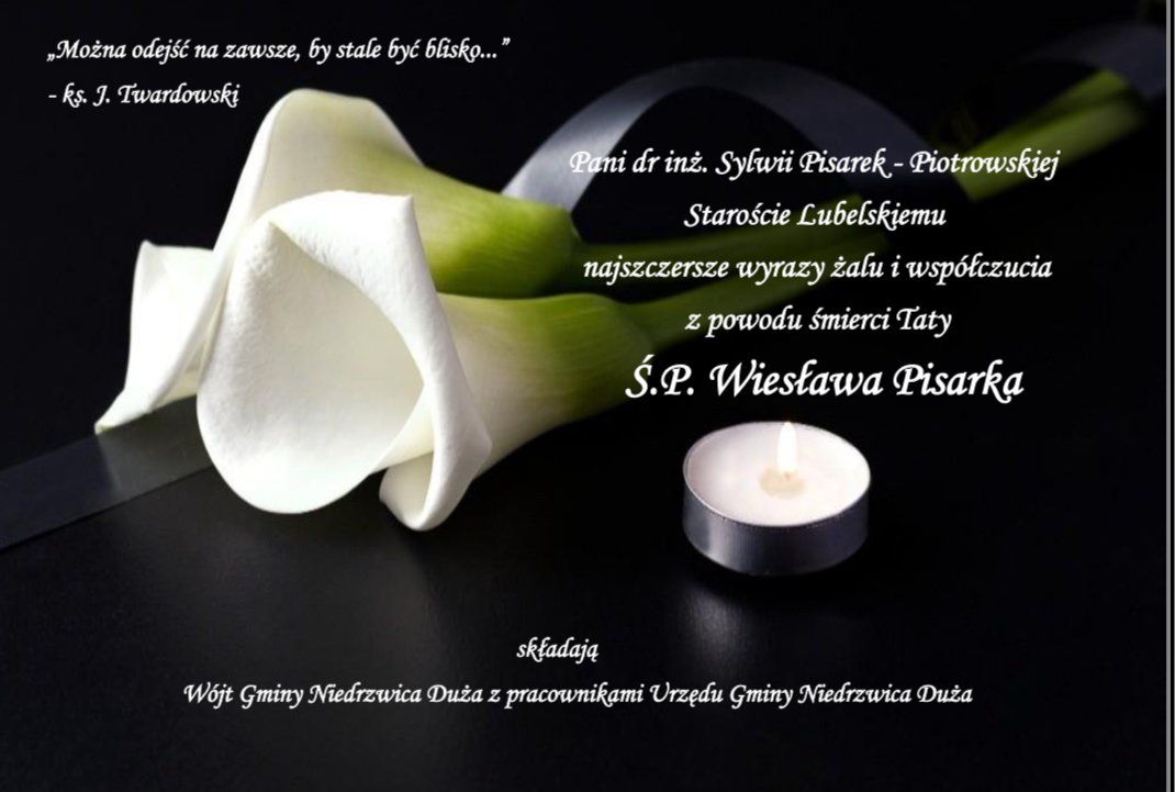 Pani dr inż. Sylwii Pisarek - Piotrowskiej Staroście Lubelskiemu najszczersze wyrazy żalu i współczucia z powodu śmierci Taty