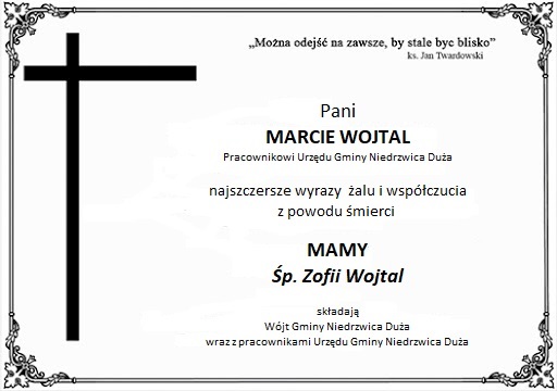 Pogrzeb Zmarłej odbędzie się w sobotę (21 listopada 2020 r.) o godz. 09:00 w Kościele Podwyższenia Krzyża Świętego w Niedrzwicy Dużej.
