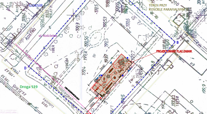 Plac zabaw zostanie zlokalizowany na działce o numerze ewidencyjnym 1937 pomiędzy drogą krajową nr 19 a placem kościelnym w Niedrzwicy Dużej. Łączna powierzchnia terenu wyniesie ok. 380 m2.