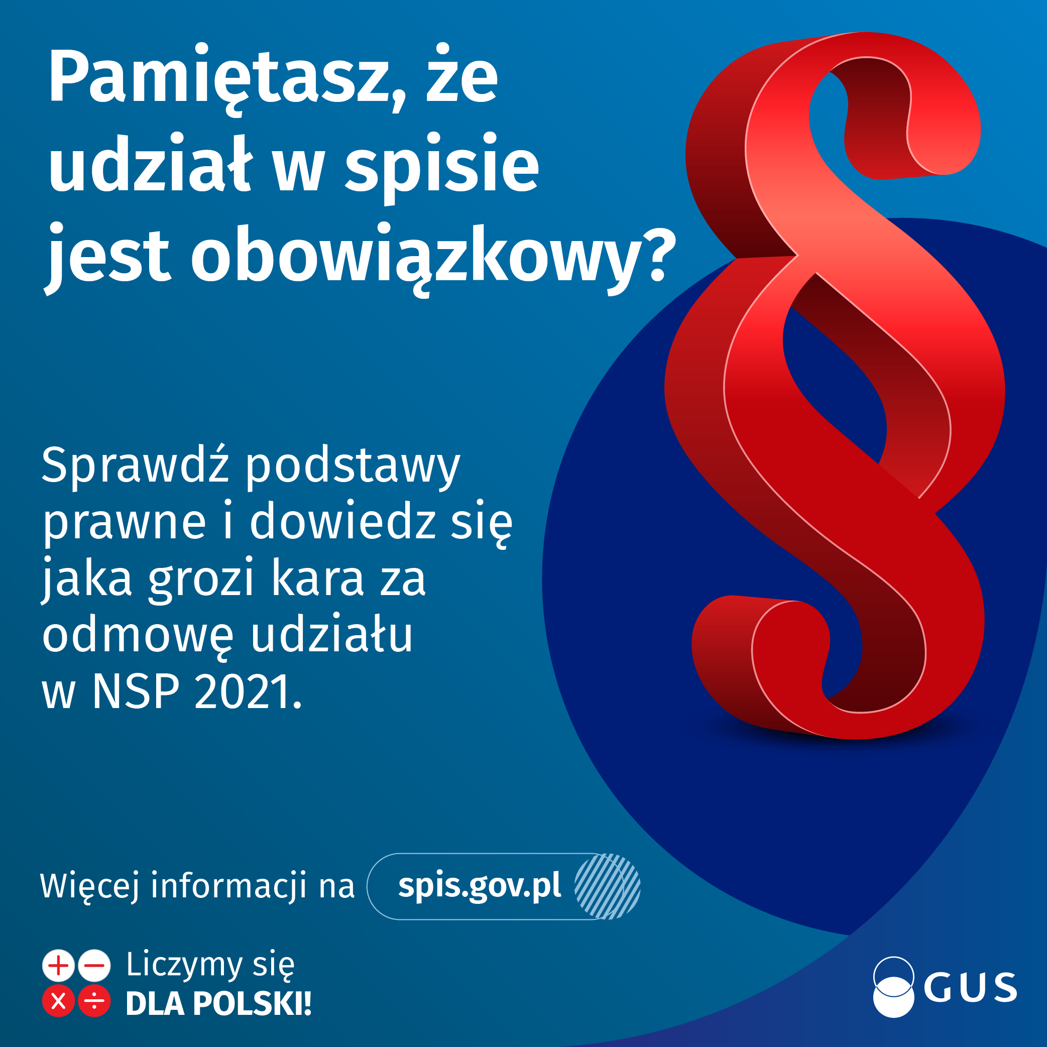Obowiązek udziału w spisie powszechnym został uregulowany w art. 6 ust. 3 i art. 9 ust. 1 ustawy o statystyce publicznej (Dz. U z 2021 r. poz. 955).