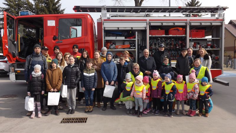 Po zakończeniu części oficjalnej Pan Marcin Jośko zaprosił wszystkie dzieci do obejrzenia samochodu strażackiego. Starszy Aspirant pokazał jakie funkcje pełnią poszczególne elementy samochodu, zademonstrował sygnały świetlne i dźwiękowe, a każde dziecko mogło wejść do wnętrza samochodu i usiąść na miejscu kierowcy.