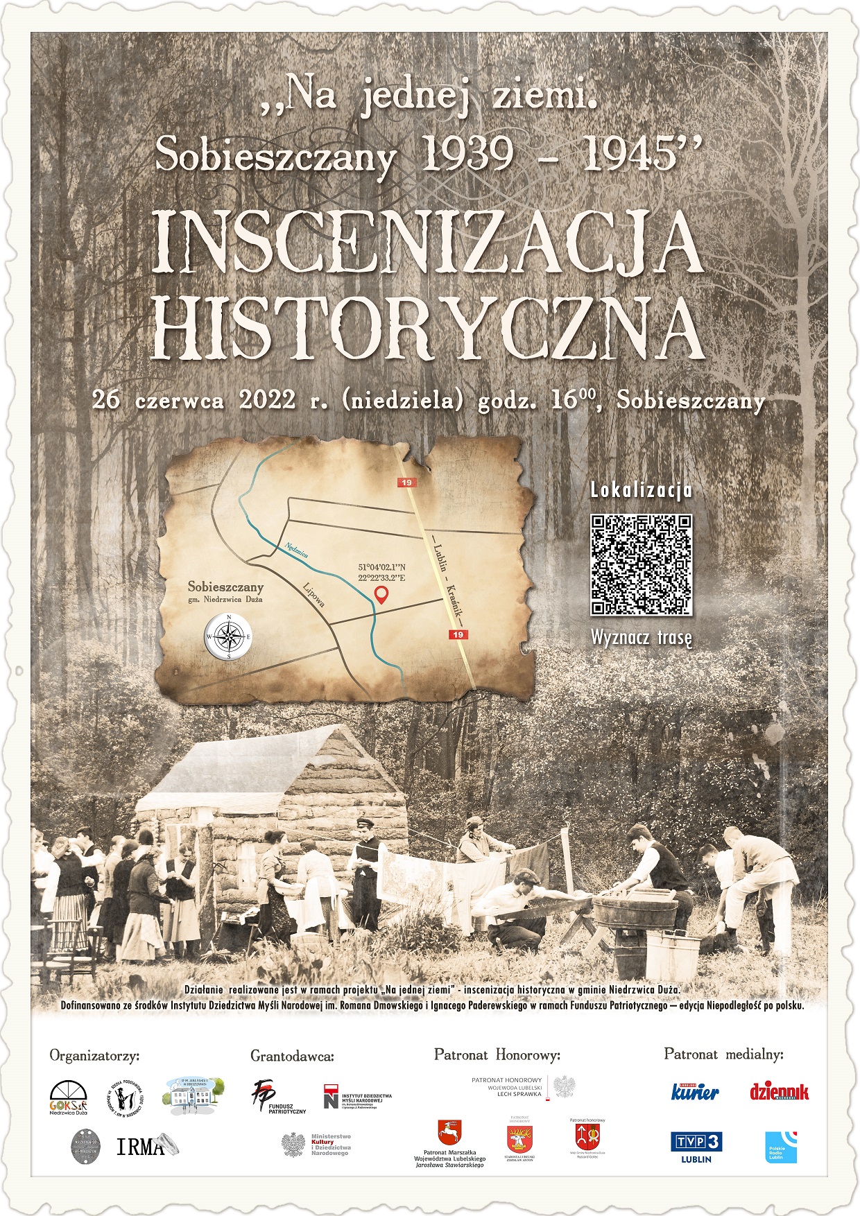 Gminny Ośrodek Kultury i Rekreacji, Szkoła Podstawowa im. Bohaterów 7. Kołobrzeskiego Pułku Piechoty w Niedrzwicy Dużej, IRMA" oraz Szkoła Podstawowa im. Jana Pawła II w Sobieszczanach serdecznie zapraszają na inscenizację historyczną