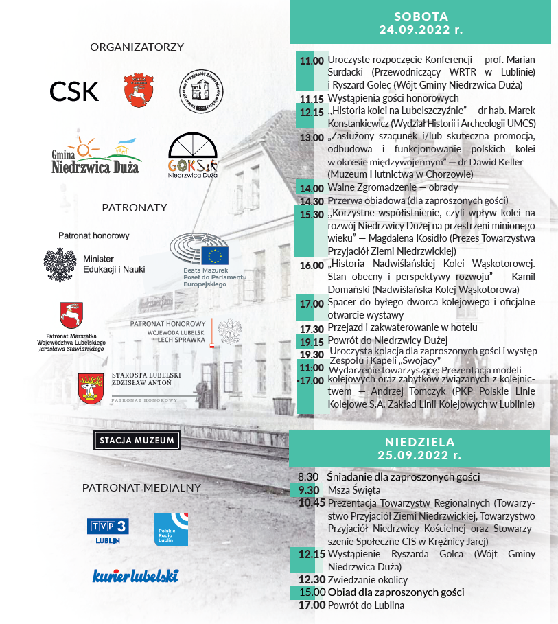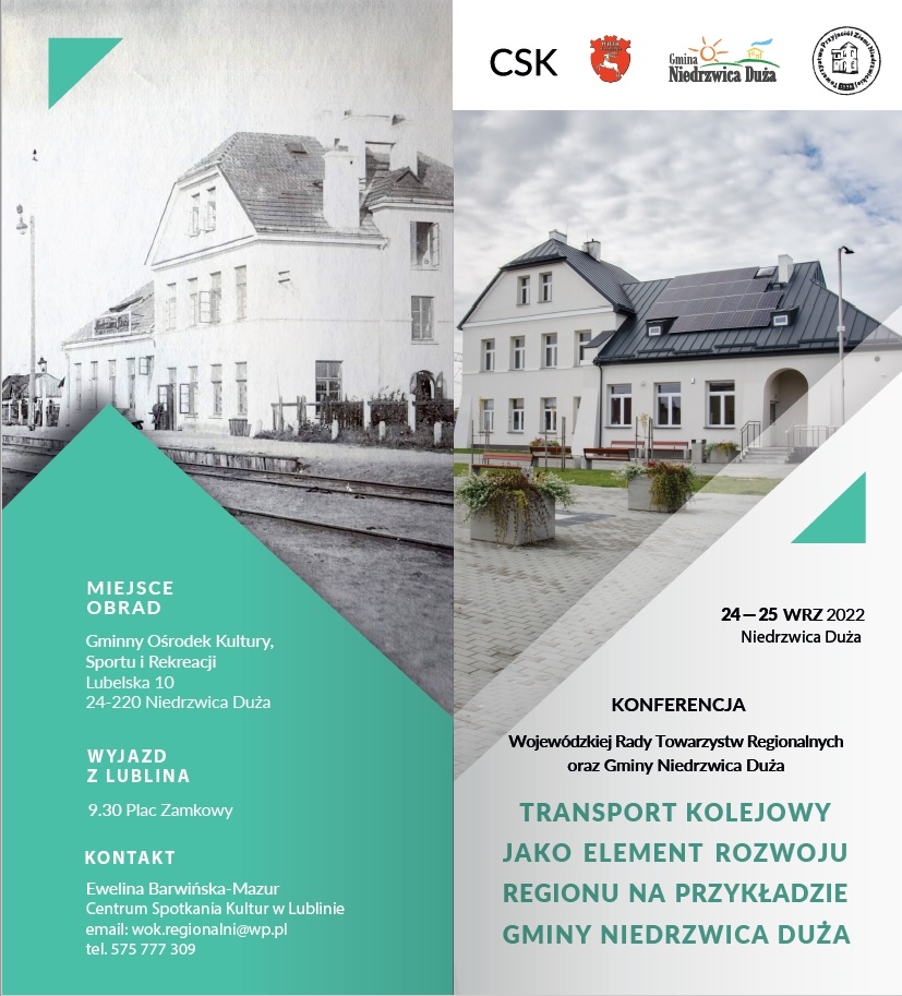 Wojewódzka Rada Towarzystw Regionalnych w Lublinie, Gmina Niedrzwica Duża, Towarzystwo Przyjaciół Ziemi Niedrzwickiej, Gminny Ośrodek Kultury, Sportu i Rekreacji w Niedrzwicy Dużej i Centrum Spotkania Kultur w Lublinie organizują konferencję pn. „Transport kolejowy jako element rozwoju regionu na przykładzie Gminy Niedrzwica Duża”. Wydarzenie skierowane jest do regionalistów z województwa lubelskiego.