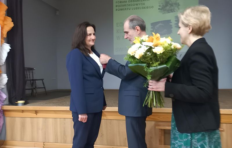 Odznaczenie za szczególne osiągnięcia dla rozwoju i promocji lokalnej kultury Pani Magdalenie wręczył Starosta Lubelski Pan Zdzisław Antoń.