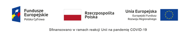 Projekt „Cyfrowa Gmina” jest finansowany z Funduszy Europejskich, w ramach Programu Operacyjnego Polska Cyfrowa na lata 2014-2020, Osi Priorytetowej V Rozwój cyfrowy JST oraz wzmocnienie cyfrowej odporności na zagrożenia - REACT-EU, działania 5.1. Rozwój cyfrowy JST oraz wzmocnienie cyfrowej odporności na zagrożenia.