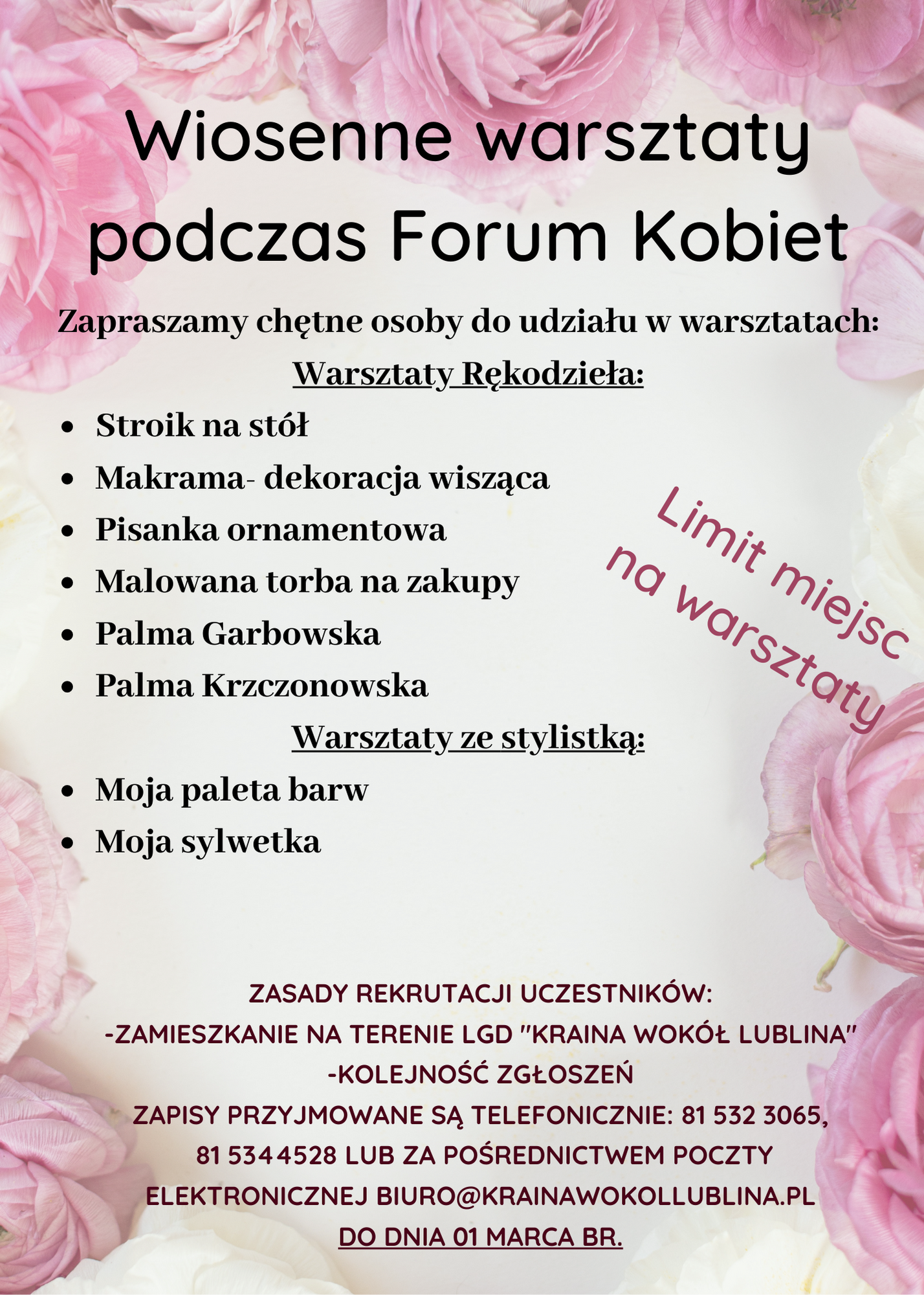 LGD Kraina Wokół Lublina zaprasza do wzięcia udziału w VIII Forum Kobiet, które odbędzie się w dniu 5 marca 2023r. w Rezydencji w Szczerym Polu w Bystrzycy Nowej.