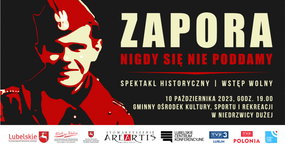 Gminny Ośrodek Kultury Sportu i Rekreacji w Niedrzwicy Dużej serdecznie zaprasza na spektakl "Zapora. Nigdy się nie poddamy", który będzie można zobaczyć w sali widowiskowej we wtorek 10 października br., o godzinie 19.00.