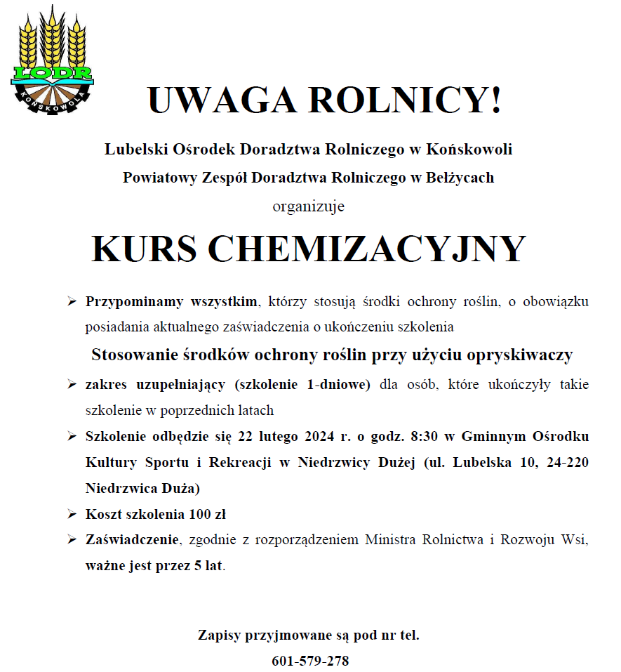 Kurs chemizacyjny dla rolników