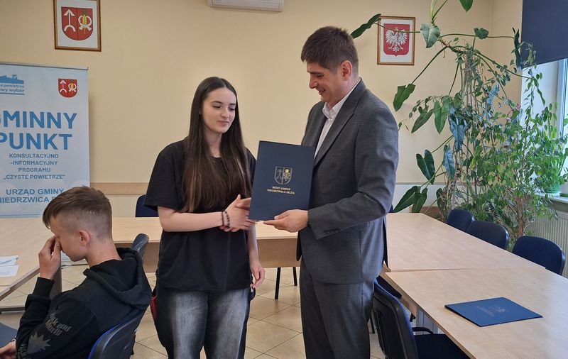 W sesji udział wzięli: Bartosz Dąbrowski - Wójt Gminy Niedrzwica Duża, Kinga Wciseł - Zastępca Wójta Gminy oraz Aleksandra Jamróz - opiekun Młodzieżowej Rady Gminy.