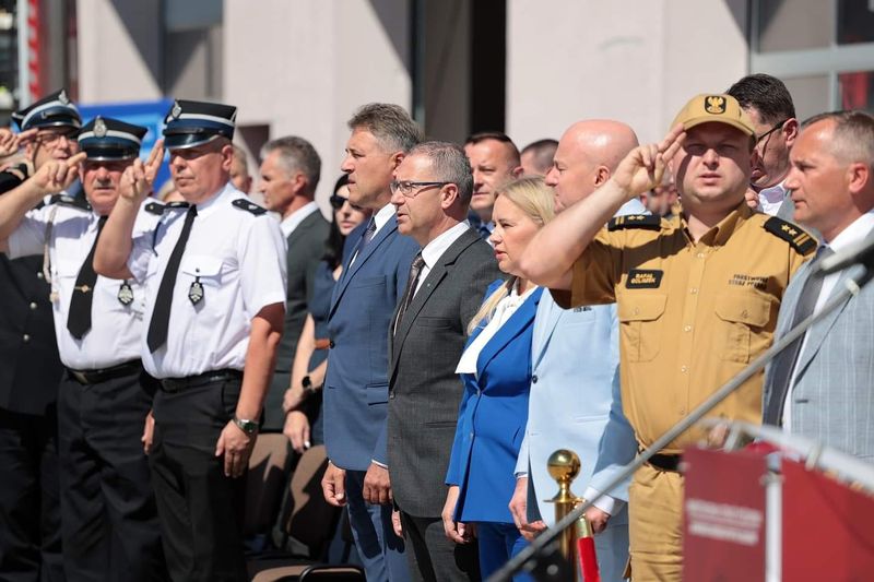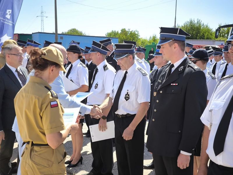 W dniu 13 sierpnia 2024 roku, Bartosz Dąbrowski - Wójt Gminy Niedrzwica Duża uczestniczył w uroczystej zbiórce z okazji przekazania sprzętu pożarniczego dla jednostek OSP i PSP z terenu woj. lubelskiego, która odbyła się na terenie Ośrodka Szkolenia Komendy Wojewódzkiej PSP w Lublinie.