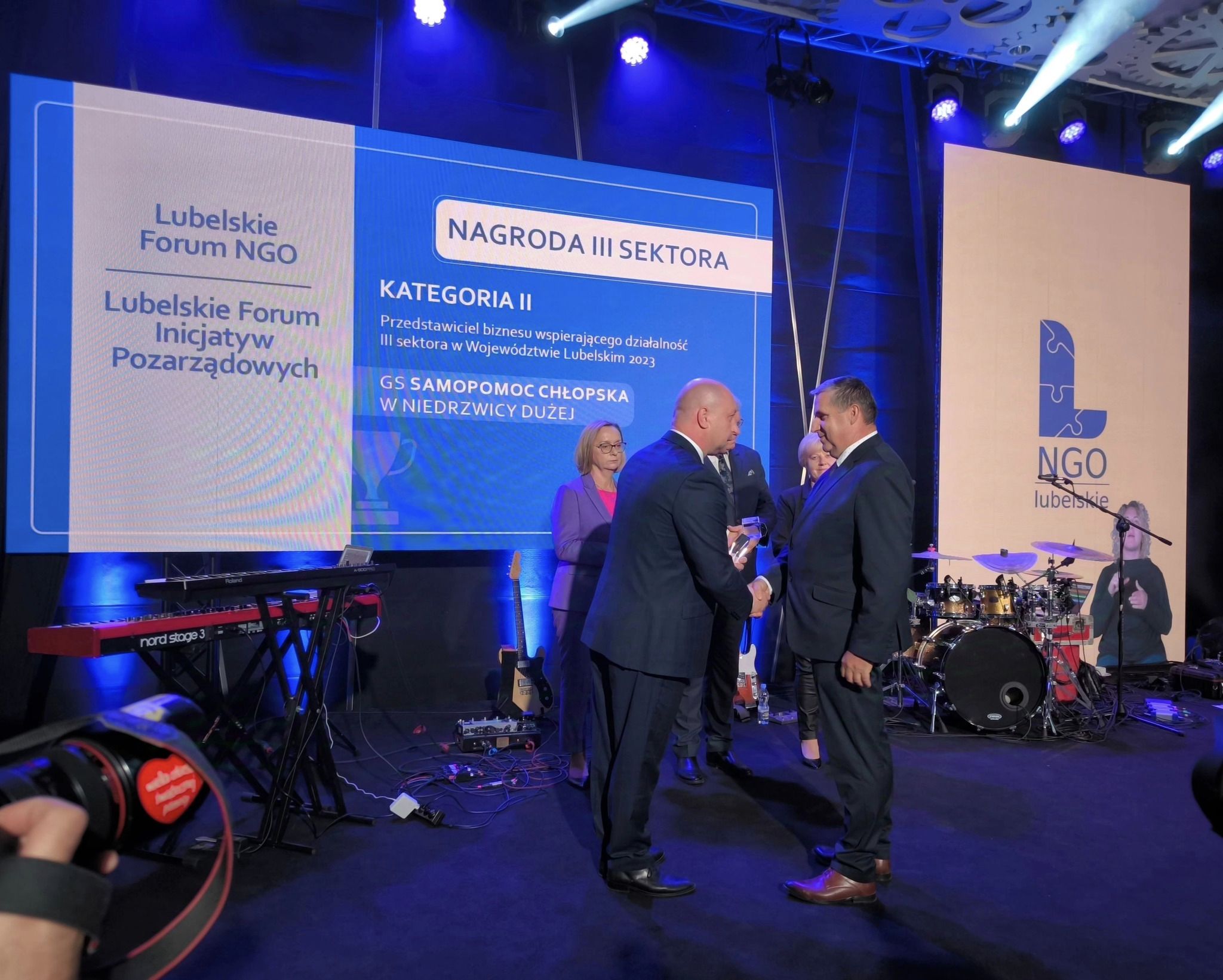 W dniu 14 października br. w Lubelskim Centrum Konferencyjnym Prezes Jerzy Skurski odebrał Nagrodę w Konkursie „Nagroda Trzeciego Sektora” przyznaną przez Radę Działalności Pożytku Publicznego Województwa Lubelskiego Gminnej Spółdzielni "Samopomoc Chłopska" w Niedrzwicy Dużej w kategorii: Przedstawiciel Biznesu wspierający działalność trzeciego sektora w Województwie Lubelskim. Nagrodę wręczył Piotr Breś - Wicemarszałek Województwa Lubelskiego.