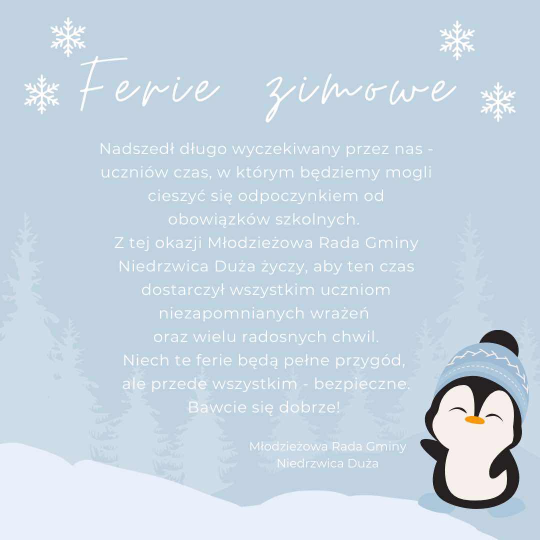 Życzenia radnych Młodzieżowej Rady Gminy Niedrzwica Duża z okazji ferii zimowych