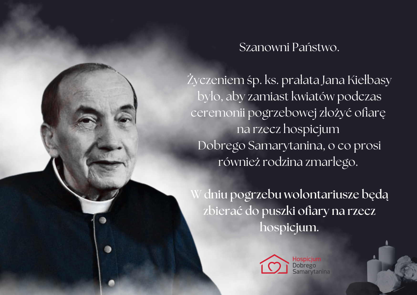 Życzeniem śp. ks. Jana Kiełbasy było, aby podczas ceremonii pogrzebowej zamiast kwiatów złożyć ofiarę na rzecz Hospicjum Dobrego Samarytanina w Lublinie, o co prosi również rodzina zmarłego.